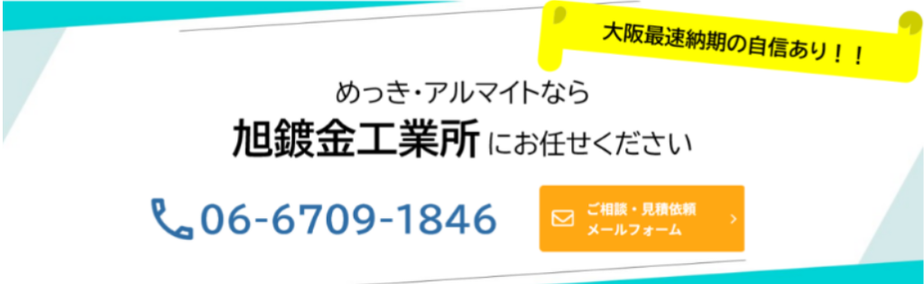 株式会社旭鍍金工業所は八尾市に工場を構え、メッキやアルマイトなどの各種表面処理を承っております。昭和22年の創業以来、各種表面処理にこだわり技術向上に努めてまいりました。